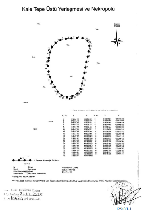 Sivas Kültür Varlıklarını Koruma Bölge Kurulu, 31 Ekim 2025 tarihli 512 sayılı toplantısında İmranlı, Altınyayla ve Gemerek ilçelerinde yer alan birçok arkeolojik alan hakkında önemli tescil kararları aldı. Kurul, çeşitli tümülüsler, yerleşim alanları ve nekropol sahalarının 2863 sayılı Kültür ve Tabiat Varlıklarını Koruma Kanunu kapsamında 1. derece arkeolojik sit alanı olarak korunmasına hükmetti. Tescil edilen alanların geçiş dönemi koruma esasları belirlenirken, ilgili tapu müdürlüklerine gerekli şerhlerin işlenmesi yönünde karar verildi.