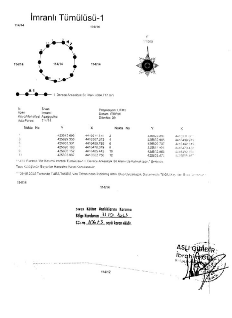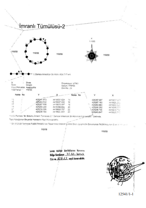 İmranlı İlçesi Aşağıçulha Köyü sınırlarında yer alan ve mera vasıflı alanlarda bulunan İmranlı Tümülüsü 1 ve İmranlı Tümülüsü 2 de 1. derece arkeolojik sit olarak tescil edildi. Sit sınırları onaylanarak ilgili parsellerin beyanlar hanesine gerekli kültür varlığı şerhleri işlendi.