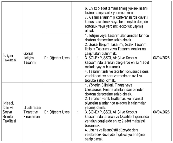 Toplamda farklı disiplinlerde birden fazla öğretim üyesi alınması planlanıyor.