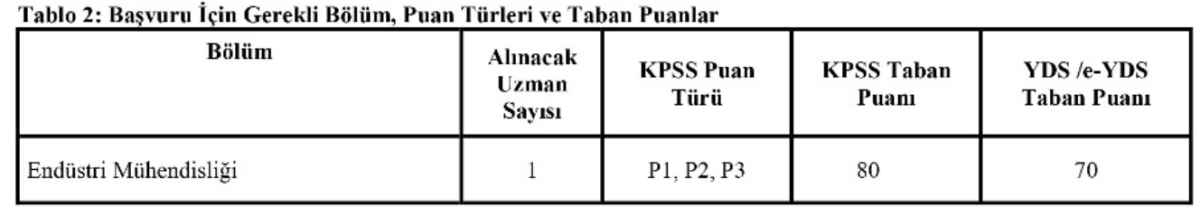 İlan takvimine göre başvurular 6 Mart 2026 tarihinde başlayacak ve 24 Mart 2026 saat 23.59’a kadar devam edecek. Adaylar başvurularını yalnızca Kariyer Kapısı sistemi üzerinden online olarak gerçekleştirebilecek. Elden veya posta yoluyla yapılan başvuruların kabul edilmeyeceği vurgulandı.