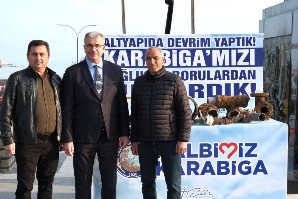 Karabiga Belediyesi, belde tarihinin en kapsamlı altyapı yenileme projesini tamamladı. Çalışmalar sırasında çıkarılan eski, çürümüş, küflenmiş ve kanserojen madde barındıran su boruları ise farkındalık oluşturmak amacıyla Karabiga Meydanı'nda sergilenmeye başlandı.