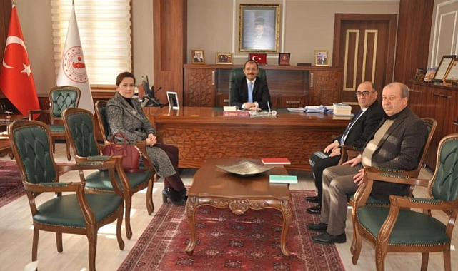Kaymakam Erdinç Dolu’yu Aile ve Sosyal Hizmetler İl Müdürü Şuayip Üner, İl Müdür, Müdür Yardımcısı Elif Yaman ve İlçe Sosyal Hizmet Merkezi Müdürü Mehmet Kargı makamında ziyaret etti.