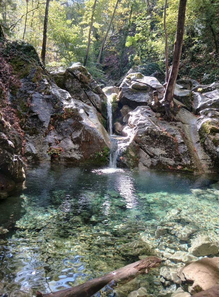 Yürüyüş, kuru dere yatağı boyunca devam etti. Katılımcılar, küçük şelale çevresinde fotoğraf molası verdikten sonra dere kenarındaki yaklaşık 50 metre yükseklikteki mağaraya çıktı. Mağaranın içini gezen yürüyüşçüler, buranın geçmiş yıllara göre daha kuru olduğunu gözlemledi. Eski mermer ocağı kenarından yapılan yürüyüşle yaklaşık 6 kilometre mesafe kat edildi.