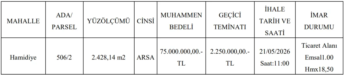 Satışa sunulan taşınmazın muhammen bedeli tam 75 milyon TL olarak belirlenirken, ihalenin kapalı teklif usulüyle yapılacağı açıklandı. İhaleye katılmak isteyenler için süreç ve şartlar da detaylı şekilde ilan edildi.