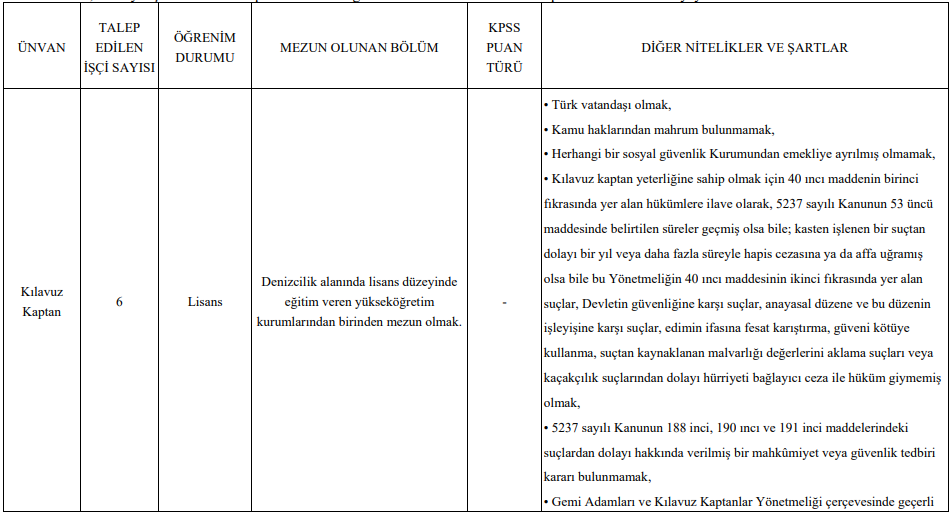 İlk bakışta sayılar düşük gibi görünse de, her kadronun kendi içinde oldukça ağır şartlar barındırdığı görülüyor. Özellikle denizcilik alanındaki kadrolar, tecrübe ve belge açısından birçok aday için zorlayıcı olabilir.