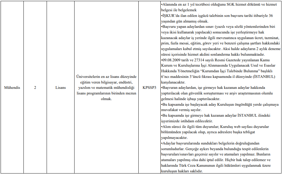 Toplamda sadece 2 kişilik kontenjan ayrılan mühendis kadrosu, en rekabetçi alanlardan biri olarak öne çıkıyor. Bilgisayar, yazılım, endüstri ve matematik mühendisliği mezunlarının başvurabileceği bu kadroda: