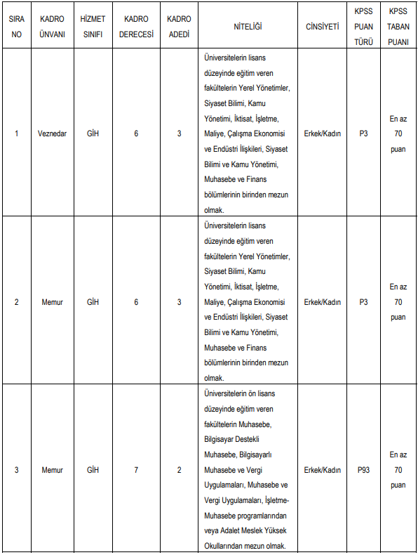 2. Memur – GİH Sınıfı, 6. Derece (3 Kadro)
