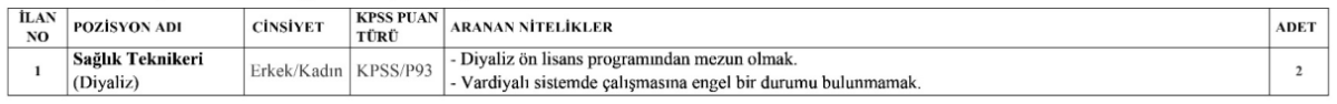Pozisyon: Sağlık Teknikeri (Diyaliz)