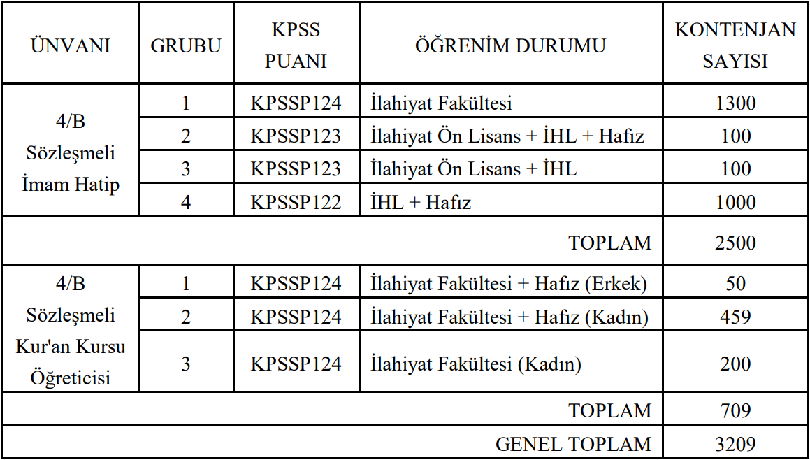 Toplamda 3.209 kontenjan için alım yapılacak.