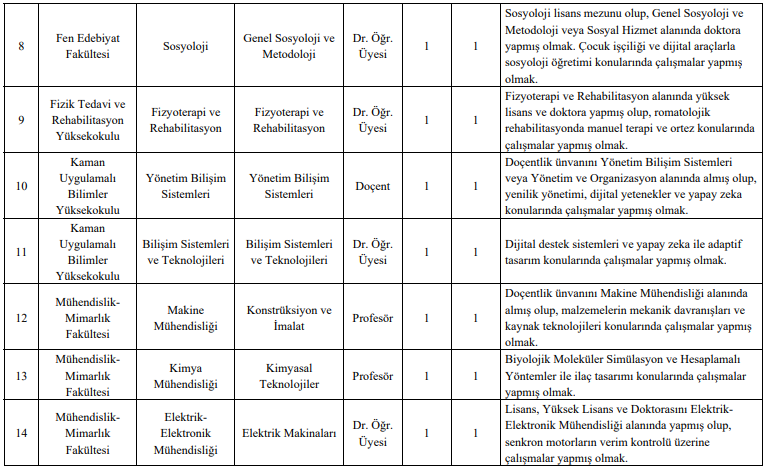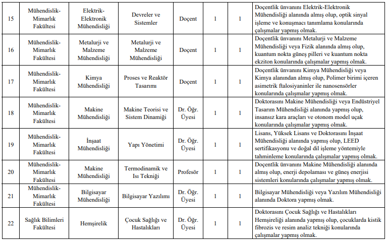 Profesör ve doçent kadrolarına yapılacak atamalar daimi statüde gerçekleştirilecek. Doktor öğretim üyesi kadroları için ise üniversitenin belirlediği asgari şartların sağlanması gerekiyor.