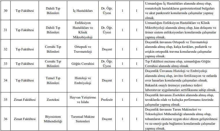 Üniversite tarafından yayımlanan ilana göre, aşağıdaki akademik unvanlarda öğretim üyesi alımı yapılacak: