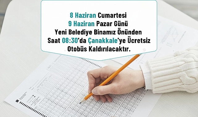 Lâpseki Belediyesi, Yüksek Öğrenim Kurumları Sınavı’na (YKS) girecek öğrenciler için ücretsiz otobüs hizmeti sunacak. 8 Haziran Cumartesi ve 9 Haziran Pazar günleri gerçekleştirilecek bu hizmetle, öğrencilerin sınav yerlerine ulaşımı kolaylaştırılacak.