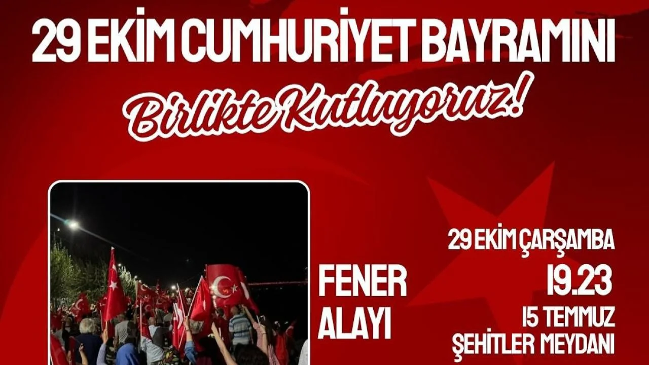 Cumhuriyet coşkusu, saatler 19.23'ü gösterdiğinde 15 Temmuz Şehitler Meydanı'nda başlayacak. Vatandaşlar, Fener Alayı etkinliğinde al bayraklarıyla omuz omuza yürüyerek Cumhuriyetin ışığını birlikte yükseltecek.