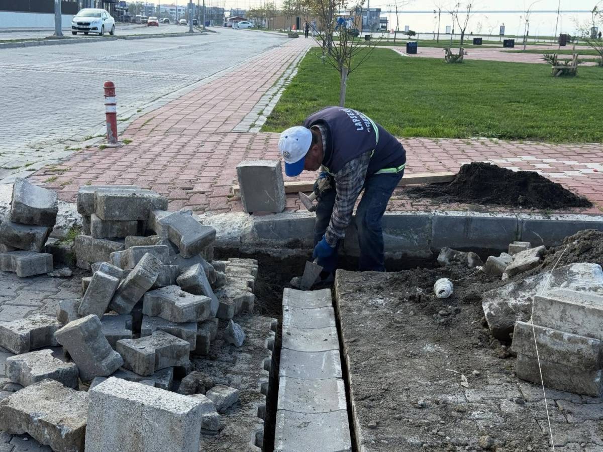 Belediye ekipleri tarafından taş ve yağmur oluklarının tamiratı gerçekleştirilirken, Üçgen Park çevresinde de çevre düzenleme çalışmaları devam ediyor. Yeni Kordon’da taş tamiratı sürerken, çevre yolu kaldırımlarında yürütülen taş onarım çalışmaları ise tamamlandı.