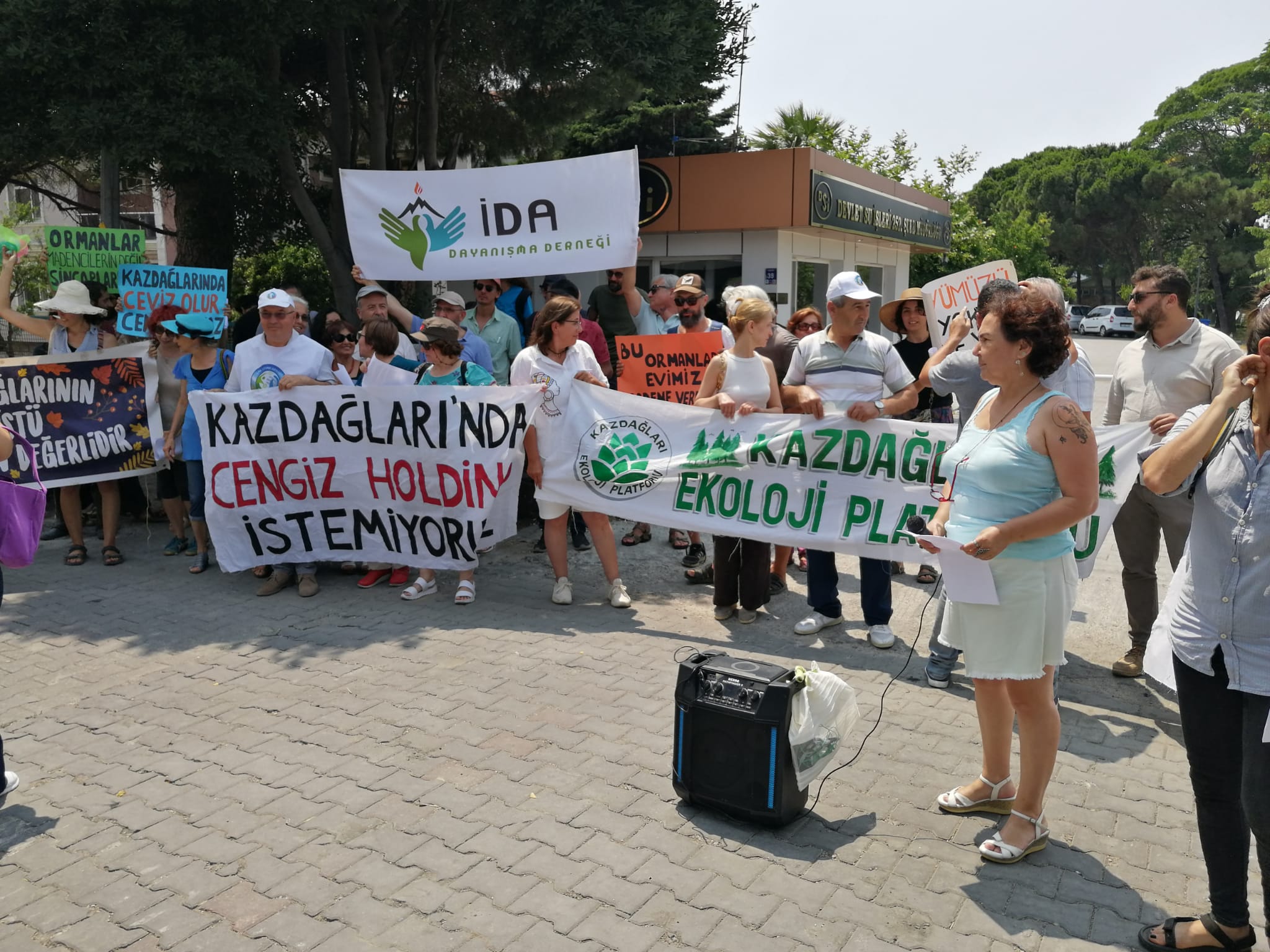 Kazdağları Kardeşliği Grubu Çanakkale Devlet Su işleri 25. Bölge Müdürlüğü önünde buluşarak, bir maden şirketinin, Kazdağlarının köyleri, su kaynaklarını ve ormanları etkileyecek projelere tepki gösterdi. Yapılan açıklamada, “Projeye karşı yöre halkı olarak açtığımız ilk davayı kazanmamıza ve ikinci dava devam etmesine rağmen yörenin su kaynakları maden için feda ediliyor” ifadeleri kullanıldı.