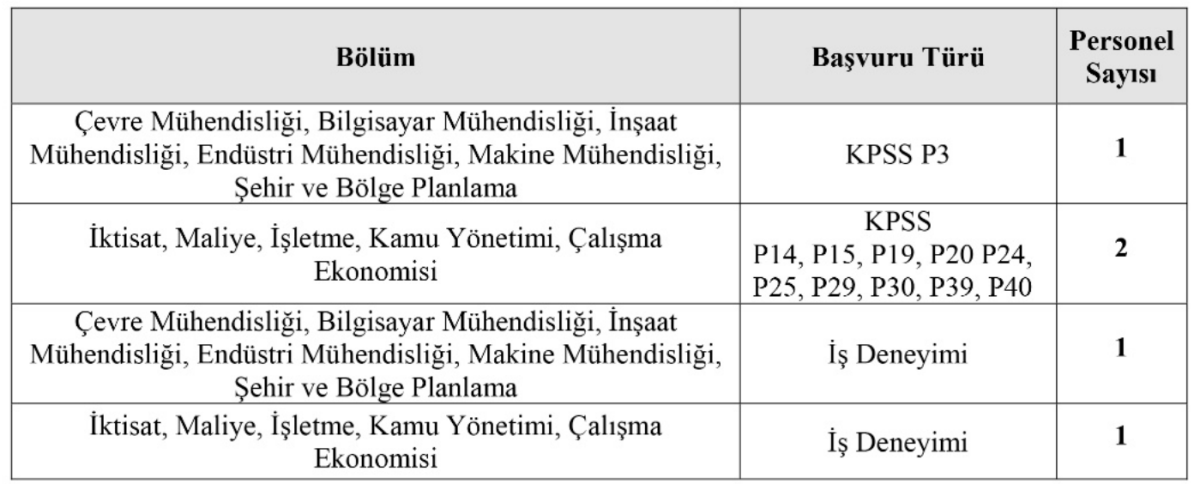 Başvurular; KPSS puanı, iş deneyimi, yabancı dil bilgisi ve akademik yeterlilikler dikkate alınarak puanlanacak. Her pozisyon için, kontenjanın 5 katı aday sözlü sınava davet edilecek.