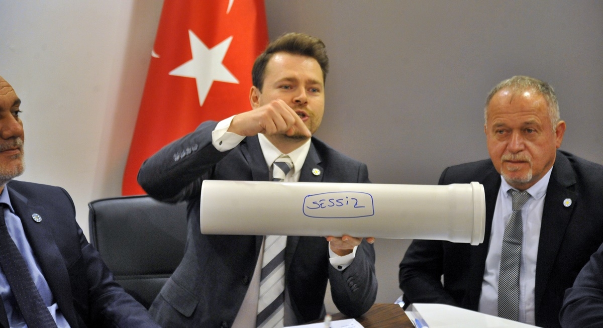 Konuşmasını sürdüren Kunt, “sessiz boru” konusuna da değindi. 2017 yılında Çanakkale Belediyesi’nin almış olduğu ‘Çanakkale Belediye il sınırları içerisinde sessiz boru kullanılacak’ kararını anımsatan Kunt, Başkan Gökhan’ın sessiz boru konusunu sormalarına rağmen anlatmadığını söyledi. Sessiz borunun iyi bir ARGE gerektirdiğini söyleyen Kunt, konu hakkında standartların sağlanamadığını, bazı firmaların satmış oldukları borulara ‘sessiz’ diyerek Çanakkale Belediyesi’nin kabul edeceği hale getirdiğini dile getirdi. Ardından masanın altından çıkan normal bir borunun üzerine ‘sessiz’ yazılarak, Çanakkale Belediyesi’nin kabul edeceğinin belirtildiği borunun gösterilen şekilde olduğu ifade edildi.