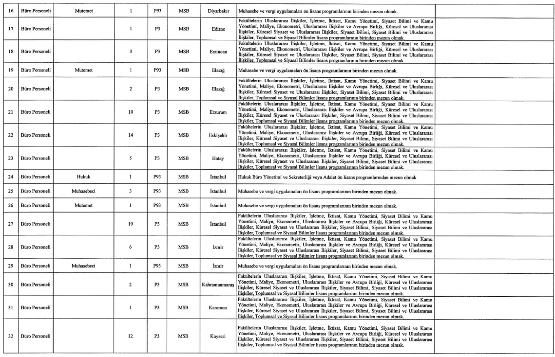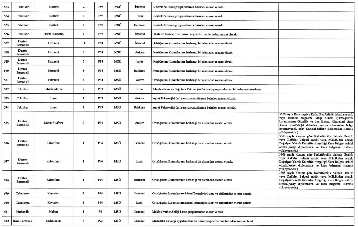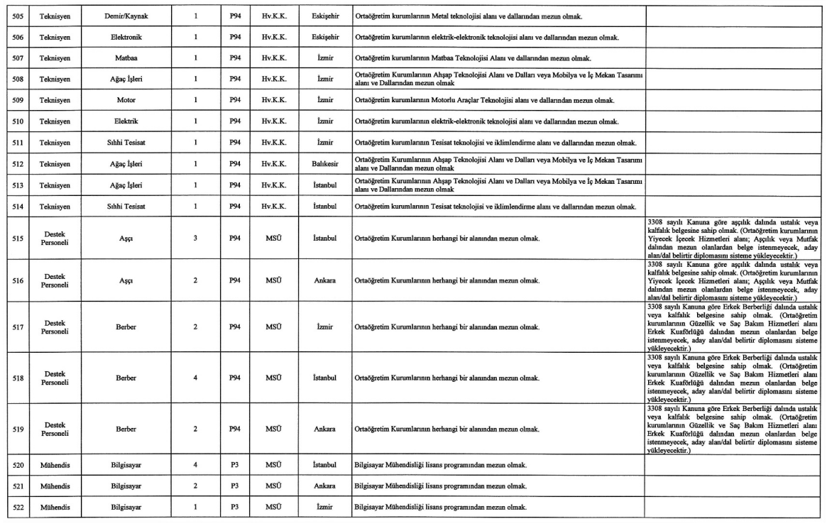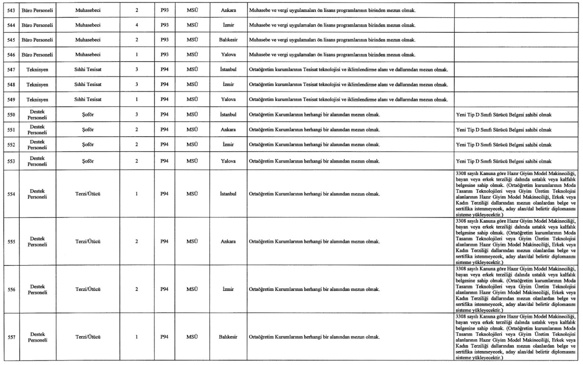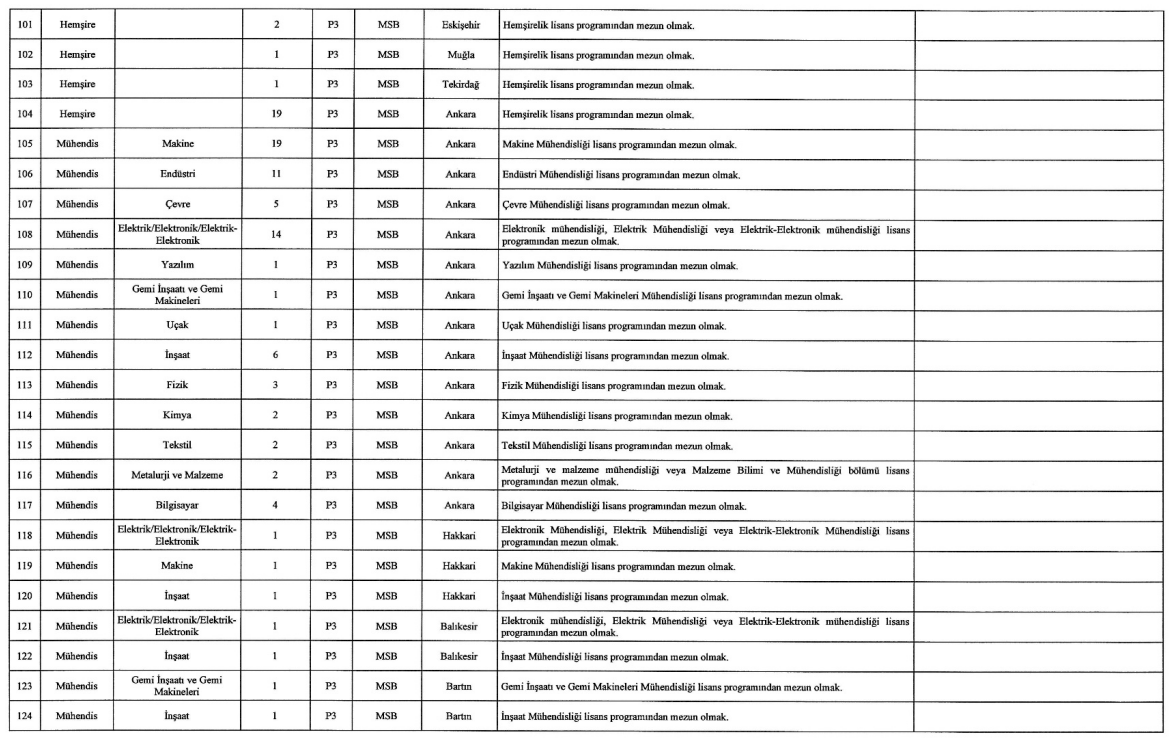 Milli Savunma Bakanlığı (MSB), Genelkurmay Başkanlığı, Kuvvet Komutanlıkları ve Milli Savunma Üniversitesi bünyesinde görevlendirilmek üzere devlet memuru ve sözleşmeli personel alımı yapacağını duyurdu. Alımlar, 657 sayılı Devlet Memurları Kanunu ile ilgili yönetmelikler kapsamında gerçekleştirilecek.