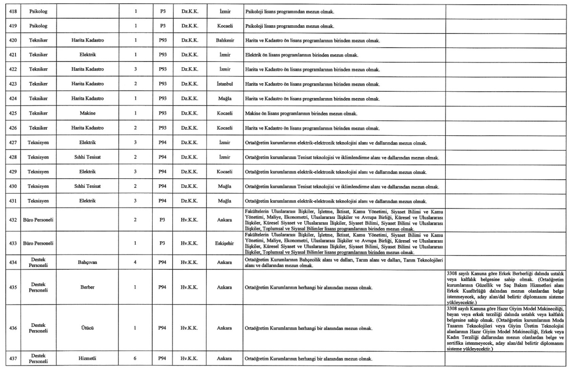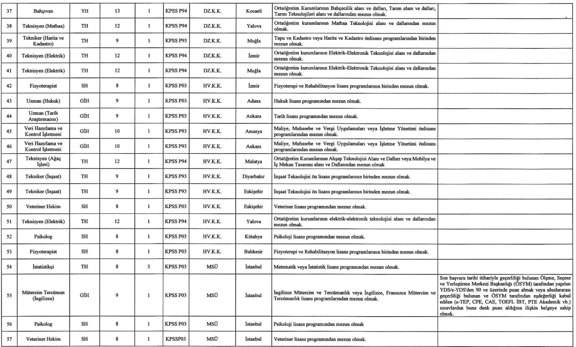 Adayların, ÖSYM tarafından 2024 yılında yapılan KPSS’ye katılmış ve geçerli puan almış olmaları gerekiyor. Ayrıca;