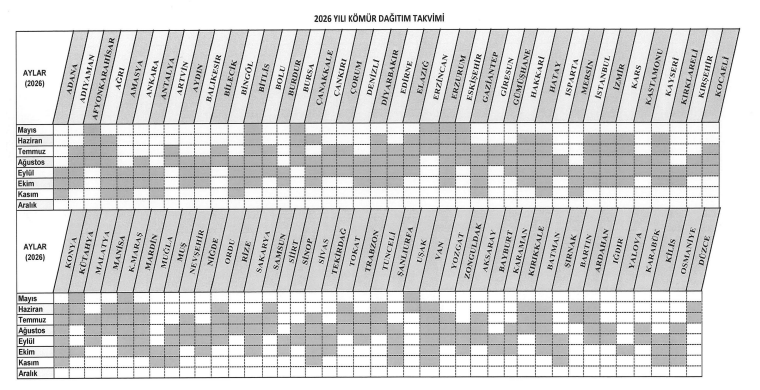 2026 yılı boyunca vakıflara yapılacak kömür sevkiyatları, Türkiye Kömür İşletmeleri Kurumu (TKİ) ve Türkiye Taşkömürü Kurumu (TTK) tarafından hazırlanacak sevkiyat programı doğrultusunda gerçekleştirilecek. Sevkiyatlar, karar ekinde yer alan dağıtım takvimine uygun şekilde planlanacak.