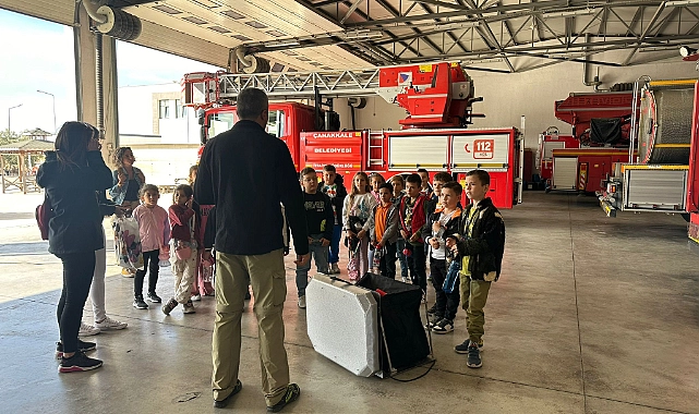 Ziyaret sırasında itfaiye personeli tarafından karşılanan minik öğrenciler, itfaiye binasını gezerek araç ve ekipmanları yakından inceleme fırsatı buldu.