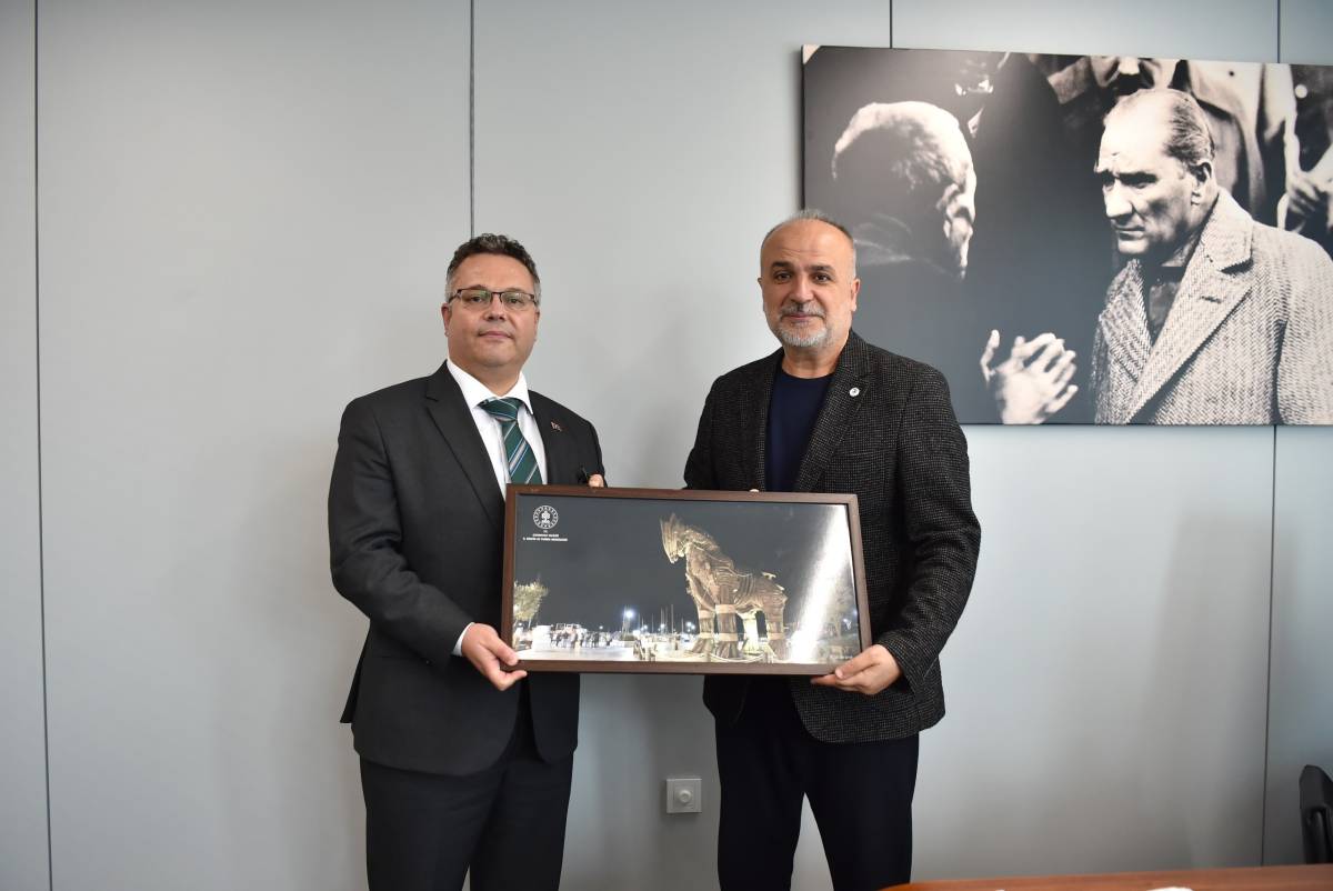 Çanakkale İl Kültür ve Turizm Müdürü Çağman Esirgemez, Müdür Yardımcıları Hüseyin Şevik ve Pelin Cengiz, Çanakkale Belediye Başkan Yardımcısı İrfan Dehmen’i nezaket ziyaretinde bulundu.