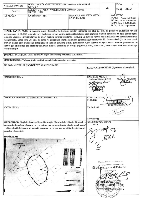 2025 yılına gelindiğinde ise bölgenin bir bölümü 01.08.2025 tarihli Kurul kararıyla III. Derece Arkeolojik Sit Alanı olarak tescil edildi. Bu tescilin ardından, 26.09.2025 tarihli karar ile Geçiş Dönemi Koruma Esasları ve Kullanma Şartları belirlenerek bölgenin koruma rejimi netleştirildi.