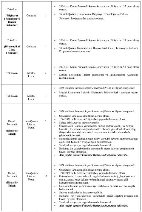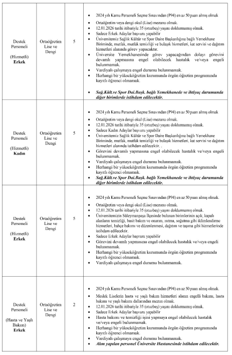 Üniversite tarafından yapılan açıklamada, söz konusu alımın KPSS (B) grubu puan sıralaması esas alınarak yapılacağı ve herhangi bir yazılı veya sözlü sınav uygulanmayacağı belirtildi. Başvurular e-Devlet üzerinden Kariyer Kapısı Kamu İşe Alım Platformu aracılığıyla alınacak.