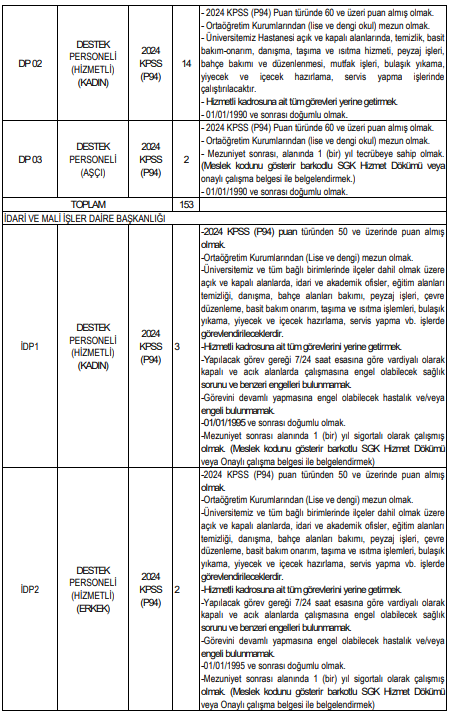 olmak üzere toplam 153 personel alınacak.