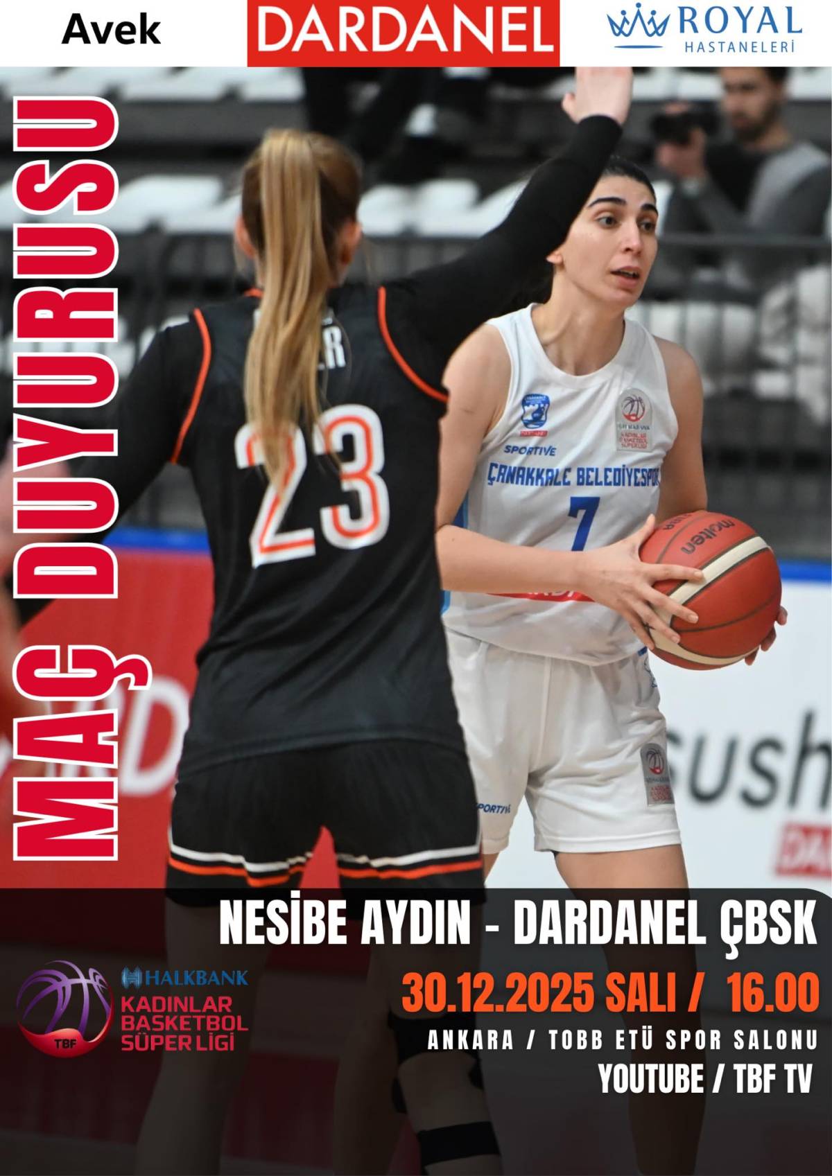 Nesibe Aydın ile Dardanel ÇBSK arasında oynanacak bu karşılaşma, sadece iki takım taraftarları tarafından değil, Halkbank Kadınlar Süper Ligi’ni yakından takip eden basketbolseverler tarafından da ilgiyle takip edilecek.