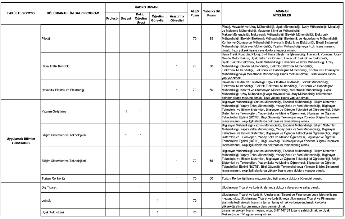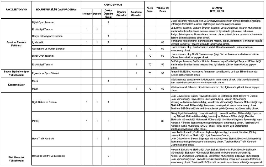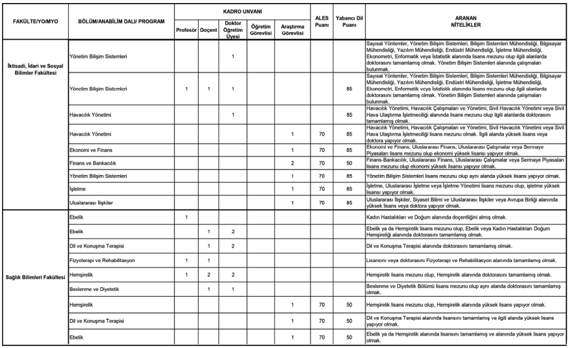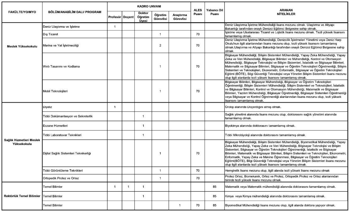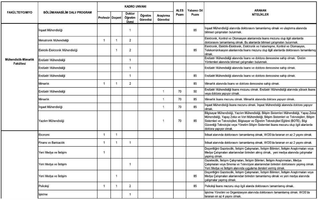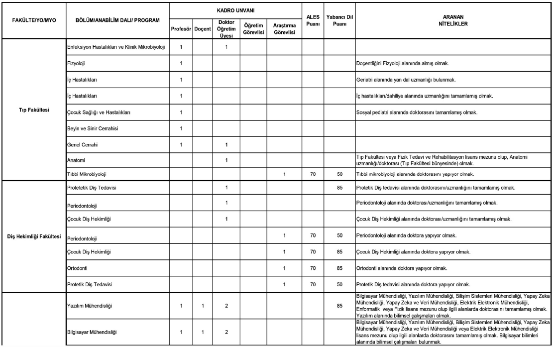 İlan, profesör, doçent, doktor öğretim üyesi, öğretim görevlisi ve araştırma görevlisi kadrolarını kapsıyor. Başvurular, üniversitenin İnsan Kaynakları Daire Başkanlığı Dijital Başvuru Sistemi üzerinden yapılacak.