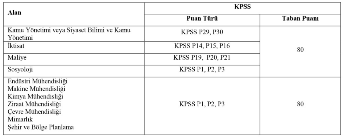 KPSS: 2024 veya 2025 yıllarında yapılan KPSS’den, ilgili puan türlerinden en az 80 puan almak