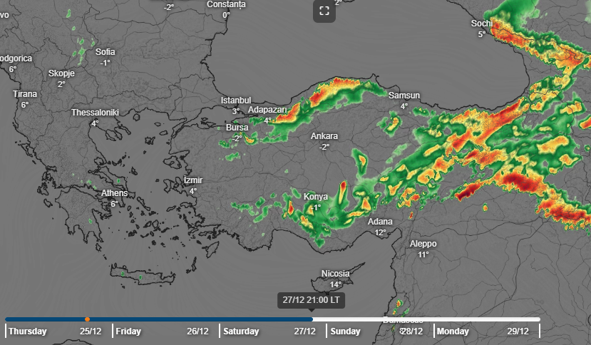 Herkesin merakla beklediği o kritik tarih geldi çattı. Tahminlere göre kar yağışı, 27 Aralık gece yarısı saatler tam 00:00’ı gösterdiğinde start alacak. İlk etapta hafif bir örtü oluşturması beklenen yağış, gün boyunca etkisini hissettirecek ancak asıl fırtına akşam saatlerinde kopacak.