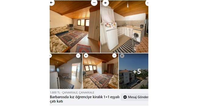 Ülke genelinde olduğu gibi Çanakkale’de de kiralık ev fiyatları zirveye oynuyor. Pandemi nedeni ile geçtiğimiz yıl özellikle öğrencilerin tutabilecekleri türden olan evler boş kalmıştı. Bu yıl ise üniversite öğrencileri okudukları ya da kazandıkları yerlere gelmek için ev tutmaya başladılar. 1+1 ya da 2+1 ev bakan öğrenciler için kira fiyatları oldukça yüksek durumda. Geçtiğimiz gün Çanakkale’de bir emlak sitesinin ilanı ise vatandaşları çileden çıkardı. İlanda 1+1 çatı katı ve eşyalı evin öğrenciye 1800 TL’den kiralanacağı belirtiliyordu. İlanı gören vatandaşlar ev sahibinin fırsattan istifade ettiğini belirtti.