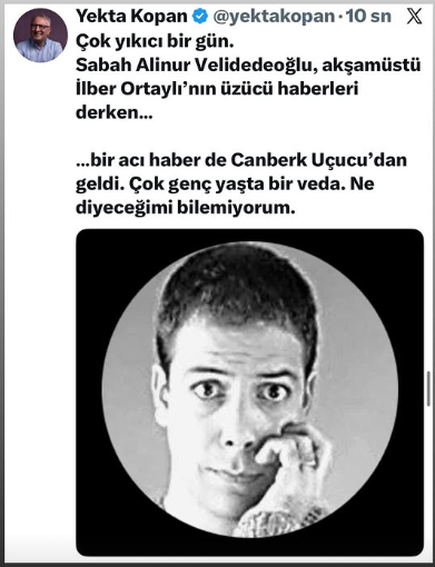 Canberk Uçucu’nun ani vefatı, sosyal medyada sanatçı dostları tarafından üzüntüyle karşılandı. Yazar ve seslendirme sanatçısı Yekta Kopan, sosyal medya hesabından yaptığı paylaşımda, “Çok yıkıcı bir gün… Çok genç yaşta bir veda… Ne diyeceğimi bilemiyorum” ifadeleriyle acısını dile getirdi.