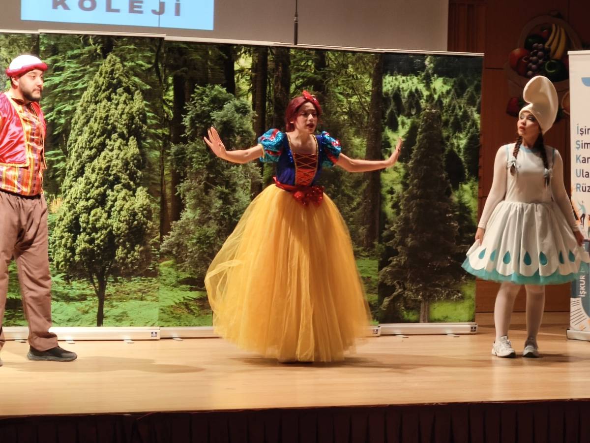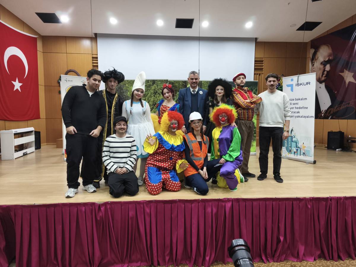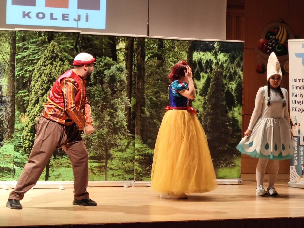 Çocukların yakından tanıdığı Pamuk Prenses, Keloğlan, Şirine, cadı, prens ve palyaço gibi masal karakterlerinin yer aldığı tiyatro oyunu, renkli kostümler ve müzik eşliğinde sahneleniyor. Oyun boyunca iş sağlığı ve güvenliği, sigortalı çalışmanın önemi, genel sağlık sigortası ve İŞKUR’un sunduğu hizmetler, çocukların yaş düzeyine uygun bir dil kullanılarak aktarılıyor.
