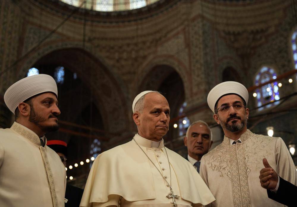 İlk resmi ziyaretini Türkiye'ye yapan Papa 14. Leo, cumartesi gününkü ziyaretleri kapsamındaki ilk durağı Sultanahmet Camii oldu. Papa'nın ziyareti nedeniyle bölgede yoğun güvenlik önlemi alındı. Polis helikopterinin de havadan kontrol ettiği bölgede adeta kuş uçurtulmadı. Papa'yı Kültür ve Turizm Bakanı Mehmet Nuri Ersoy, İstanbul İl Müftüsü Doç. Dr. Emrullah Tuncel, Sultanahmet Cami imamı Fatih Kaya, müezzin Musa Aşgın Tunca ve diğer yetkililer karşıladı. Sultanahmet Cami müezzini Musa Aşgın Tunca, Papa 14. Leo'ya camiyi anlattı. Papa 14. Leo'nun, Sultanahmet Cami müezzini Musa Aşgın Tunca'yı büyük bir dikkatle dinlediği ve camiyi de hayranlıkla incelediği görüldü. Papa, yarım saatlik ziyaretin ardından camiden ayrıldı. Sultanahmet Cami müezzini Musa Aşgın Tunca, Papa 14. Leo'nun tarihi ziyaretini anlattı.