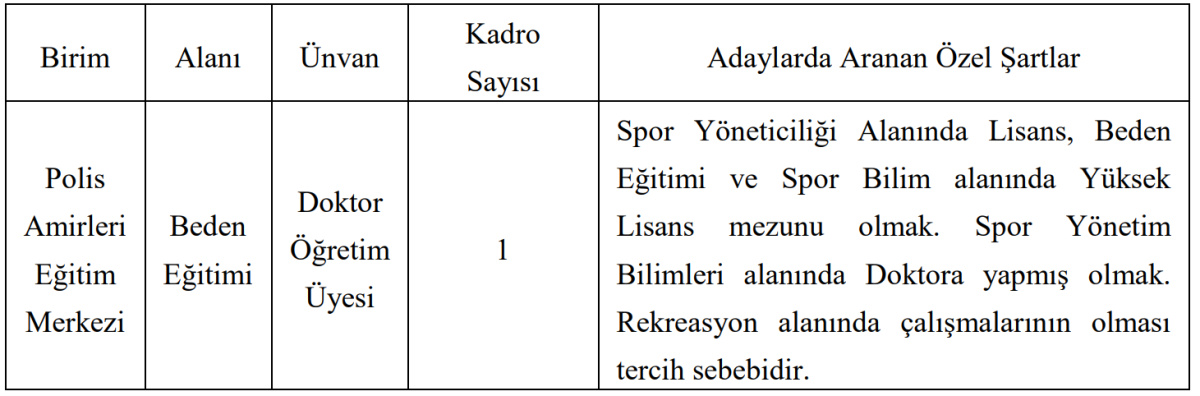 PAEM bünyesinde alınacak öğretim üyesi, Beden Eğitimi alanında görev yapacak. Adaylarda aranan özel şartlar ise şu şekilde açıklandı:
