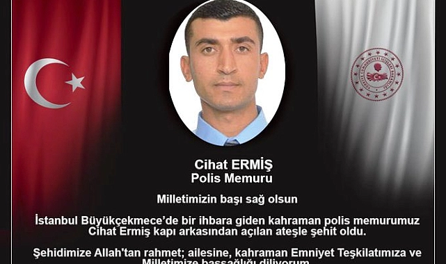 Polis Memuru Cihat Ermiş Şehit olması ile ilgili açıklama yapan İçişleri Bakanı Ali Yerlikaya; “Milletimizin başı sağ olsun İstanbul Büyükçekmece'de bir ihbara giden kahraman polis memurumuz Cihat Ermiş kapı arkasından açılan ateşle şehit oldu. Şehidimize Allah'tan rahmet; ailesine, kahraman Emniyet Teşkilatımıza ve Milletimize başsağlığı diliyorum. Makamı âli olsun” ifadelerinikullandı.