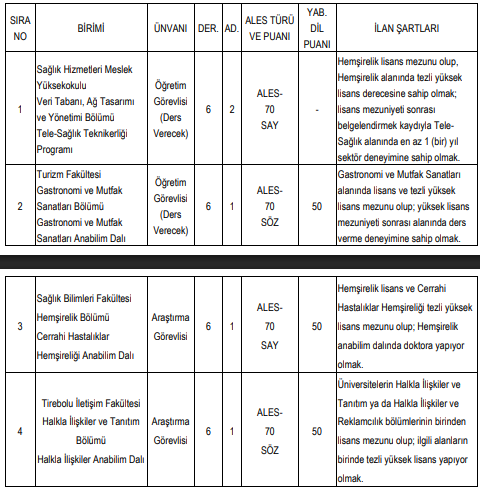 Başvuru yapacak adayların 657 sayılı Devlet Memurları Kanunu’nun 48. maddesindeki şartları taşıması gerekiyor. ALES’ten en az 70 puan, yabancı dil sınavlarından en az 50 puan (yabancı dilde eğitim veren programlar için 85) almak gerekiyor. Tezli yüksek lisans, doktora, tıpta uzmanlık veya sanatta yeterlik eğitimini tamamlamış ve daha önce yükseköğretim kurumlarında görev yapmış adaylar ALES şartından muaf tutuluyor. Ayrıca, bazı öğretim görevlisi kadrolarında yabancı dil şartı aranmayacak.