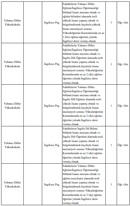 Öğretim görevlisi ve araştırma görevlisi kadrolarına başvuracak adaylardan ise ALES ve yabancı dil sonuç belgeleri, transkriptler, öğrenci belgeleri, askerlik durumu ve adli sicil kaydı gibi kapsamlı bir belge seti isteniyor. Belgelerin asıllarının ibraz edilmesi halinde üniversite tarafından “aslı görülmüştür” onayı yapılabileceği belirtildi.