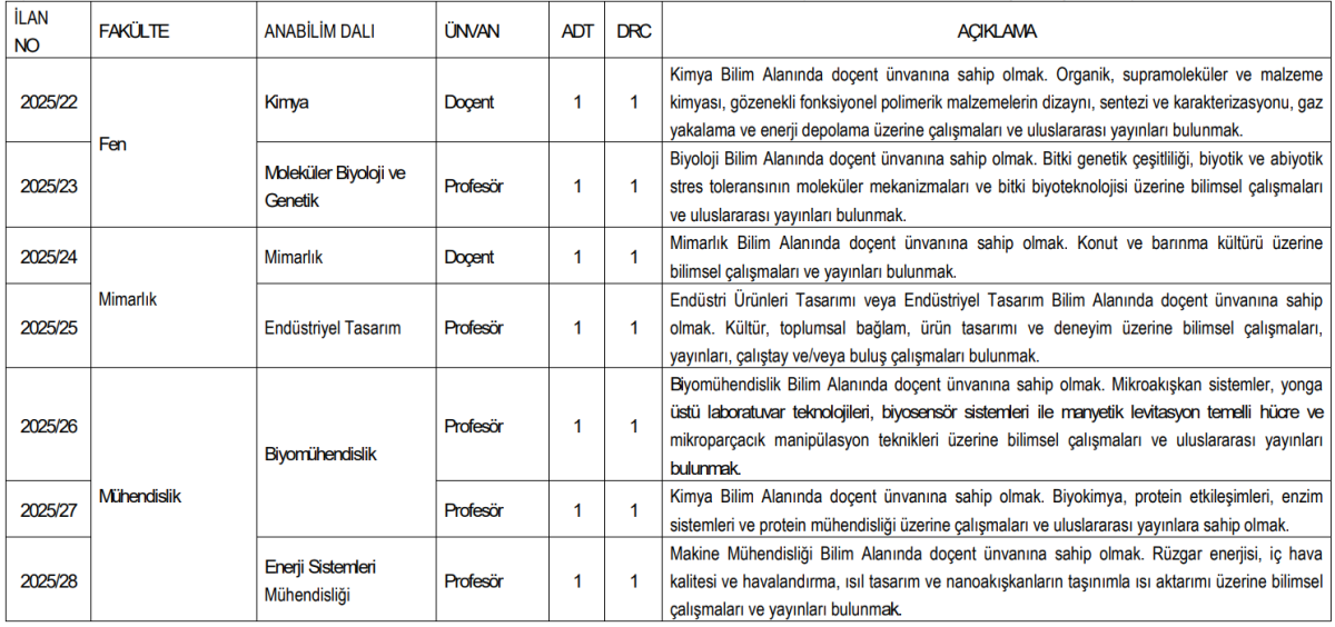 Bu kadroların, tasarım ve kültür odaklı akademik üretimi olan adaylara yönelik olduğu belirtiliyor.