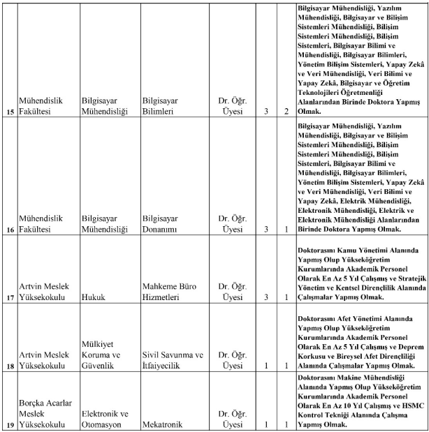 Yayımlanan ilana göre Artvin Çoruh Üniversitesi bünyesinde iki farklı akademik unvan için alım yapılacak. Bunlar;