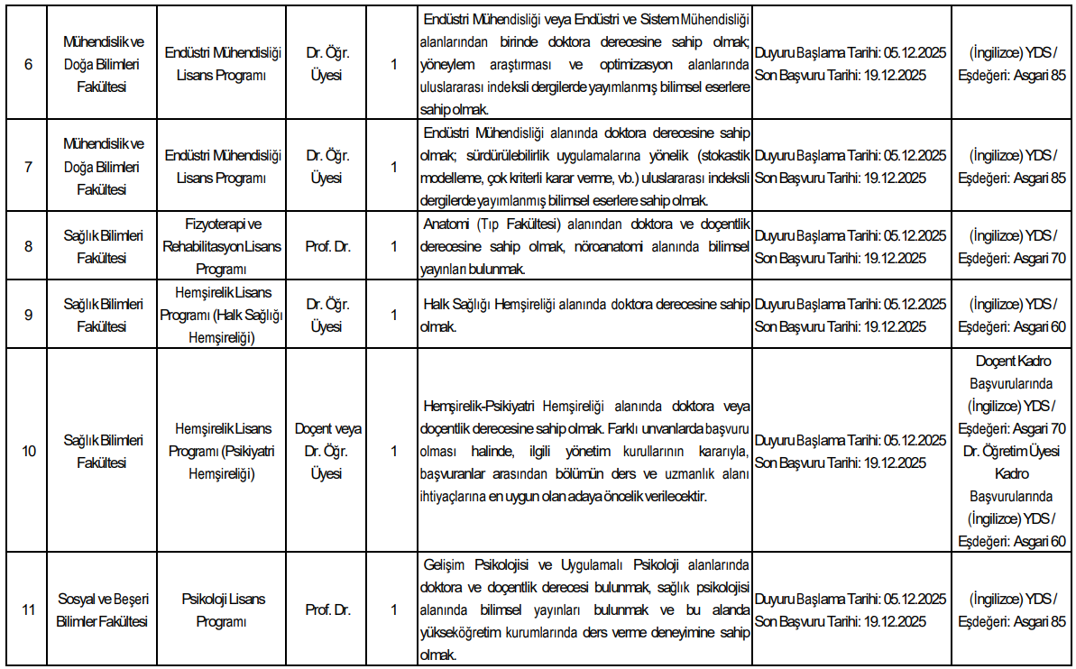 Üniversite, hem öğretim üyesi hem de öğretim elemanı başvuruları için şu uyarıyı yaptı: