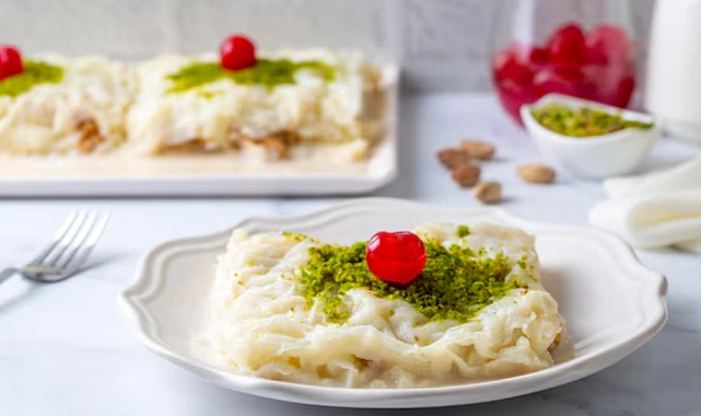 Son katı da yerleştirdikten sonra, kalan sütlü karışımı güllacın üstüne dökün. İsterseniz, üzerine nar taneleri ve ceviz içi ekleyerek görsel bir şıklık katabilirsiniz. -