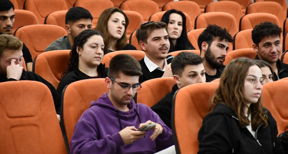 Rektör Erenoğlu, ÇOMÜ’nün öne çıkan uygulamalarından biri olan işbaşı eğitim sistemini öğrencilere anlattı. 3+1 ve 7+1 modelleri sayesinde öğrencilerin mezun olmadan sektör deneyimi elde ettiğini ifade eden Erenoğlu, bu sayede öğrenci istihdamının da güçlendiğini söyledi.