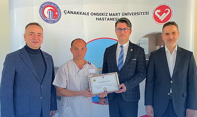 ÇOMÜ Rektörü Prof. Dr. R. Cüneyt Erenoğlu, ÇOMÜ Hastanesi’ni ziyaret etti ve hastane personellerinden Yusuf Hamdi Altay’a teşekkür belgesi takdim etti.