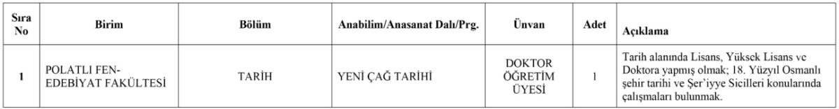 Yayımlanan ilana göre öğretim üyesi alımları;