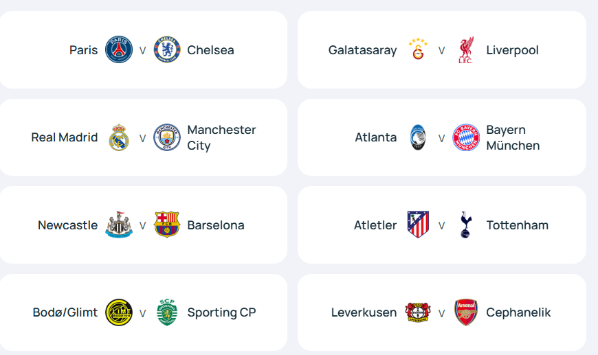 Bu eşleşmelerle birlikte Avrupa futbolunun farklı ekolleri sahada karşı karşıya gelecek. İngiliz, İspanyol, Alman, Fransız, İtalyan, Portekiz, Norveç ve Türk temsilcileri çeyrek final yolunda kozlarını paylaşacak.