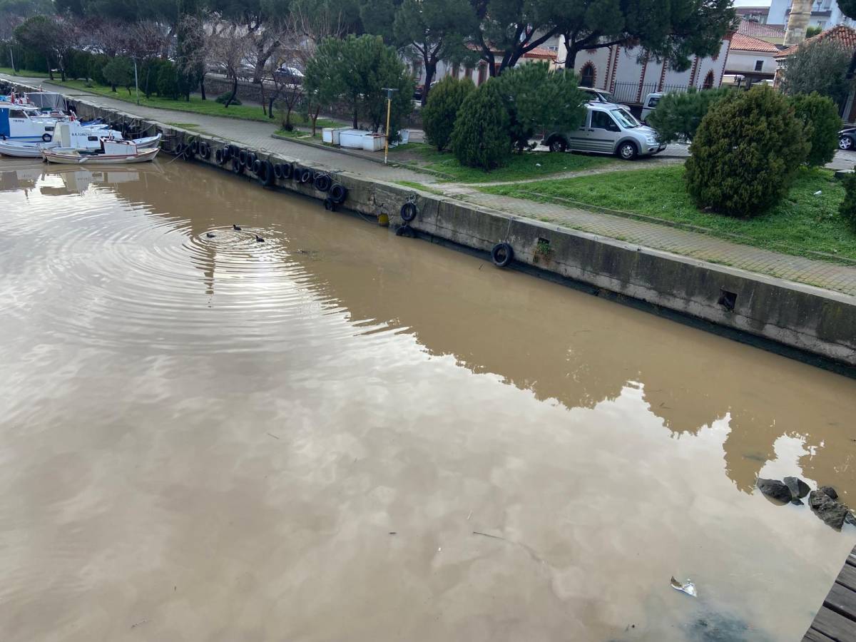 Sarıçay’dan akan yoğun çamurlu suyun Çanakkale Boğazı ile buluştuğu noktada denizin rengi de değişti. Akıntıyla birlikte kıyı şeridinde kahverengi bir tabaka oluşurken, boğazın orta kısımlarındaki mavi su ile kıyıdaki çamurlu su olduğu farkedildi.